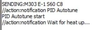 Con la cama a temperatura ambiente y la impresora conectada a PRONTERFACE, enviar el siguiente comando: M303 E-1 S60 C8