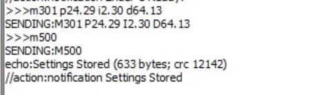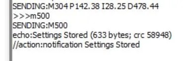 M304 P(valor kp) I(valor_ki) D(valor_kd)M500 (este es para guardar)
