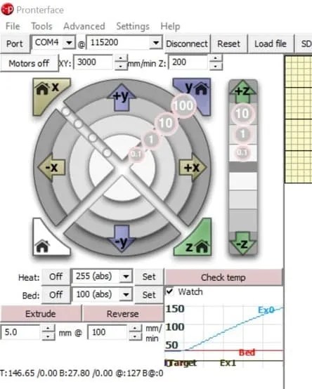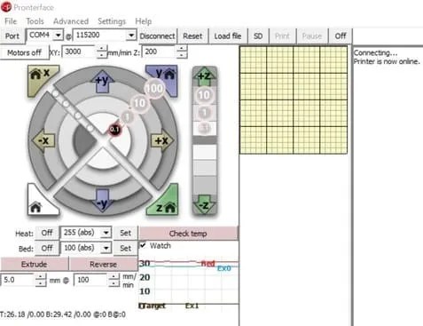 3.- Visualizar los valores actuales para la calibración de impresora 3D