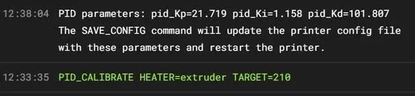 PID_CALIBRATE HEATER=extruder TARGET=210