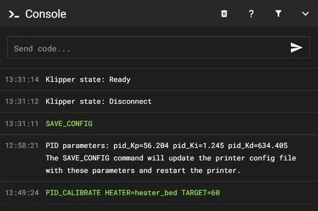 Una vez finalizado el comando, haremos SAVE_CONFIG para que se guarden en nuestro «printer.cfg»