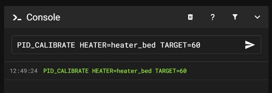 PID_CALIBRATE HEATER=heater_bed TARGET=60